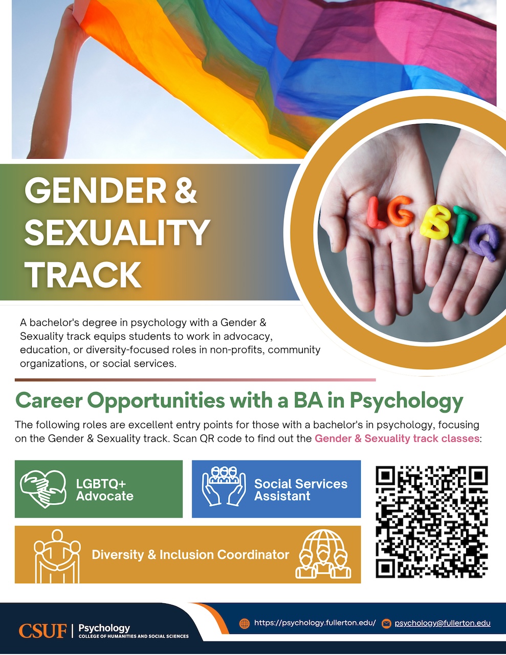 Note: Psychology Tracks are not concentrations. If you decide to follow one of the tracks, the track itself will not appear on your TDA, transcript, or diploma. If you decide to pursue one of the recommended minors listed in any of the flyers, the minorwill appear on your TDA, transcript, and diploma.
